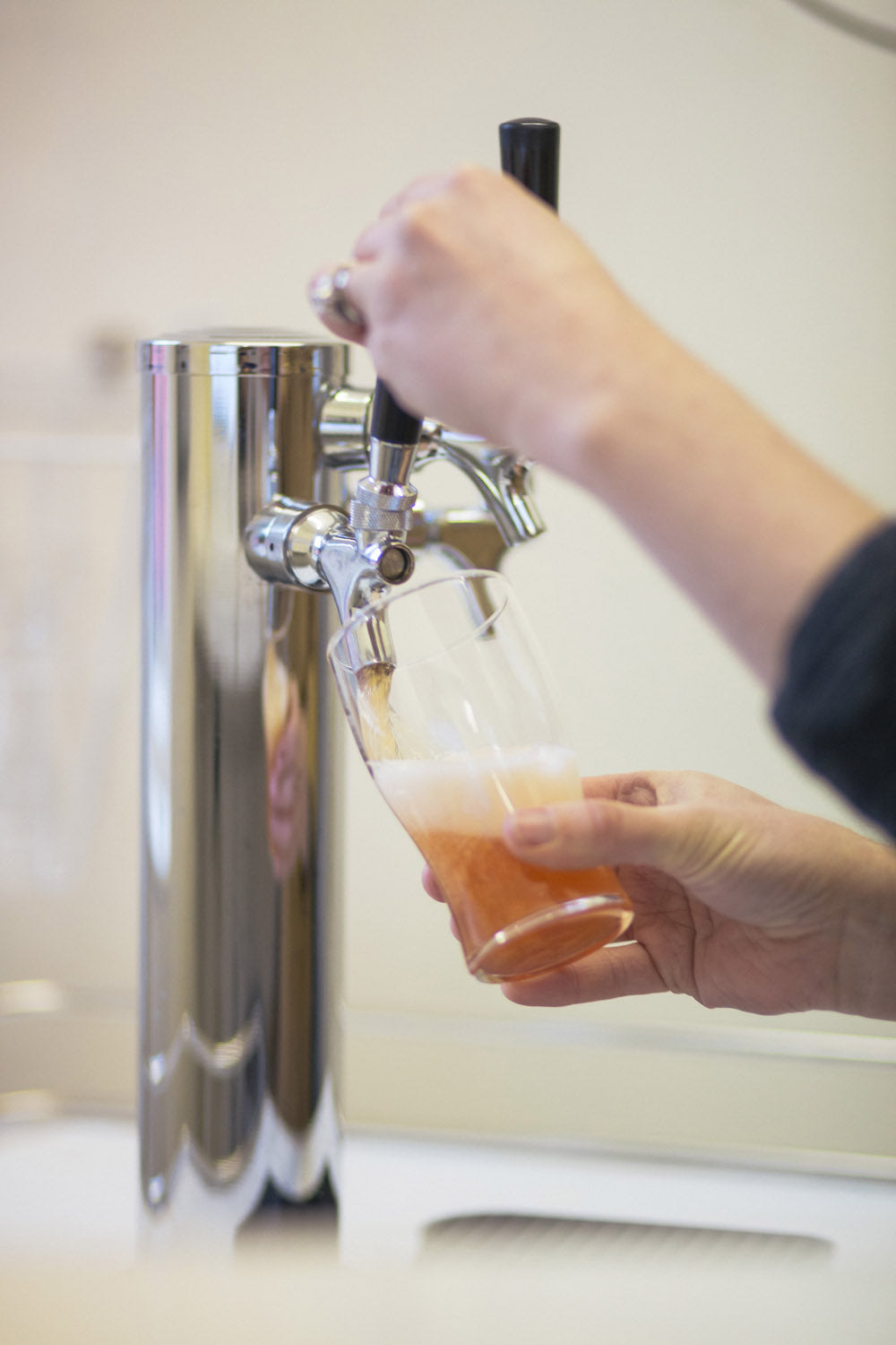Kombucha is dispensed from stainless steel kegs in to refillable bottles/glasses. Once the kegs are empty they are returned to us, cleaned and refilled with kombucha before being sent back out.